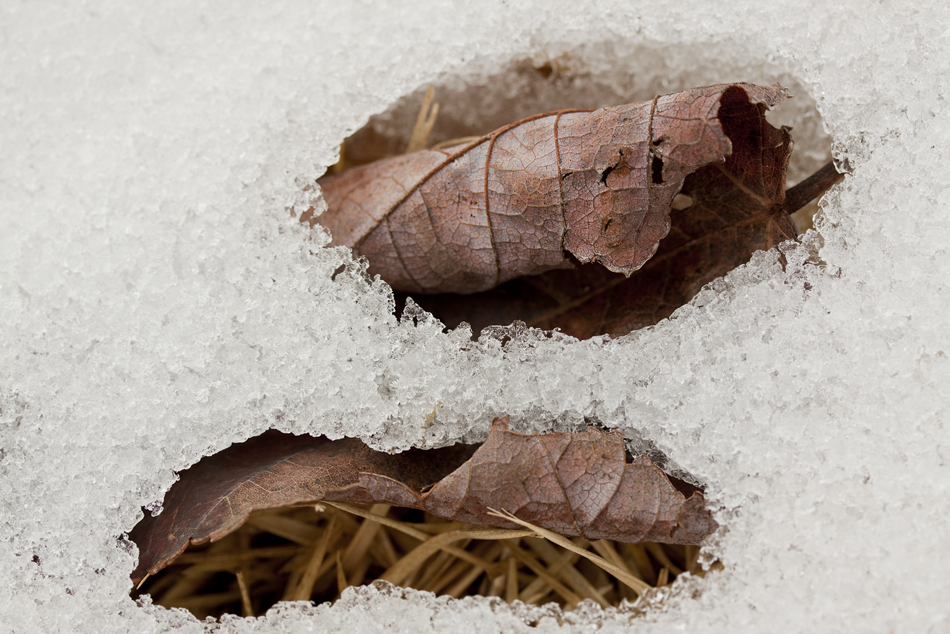 I really like this one of leaves surfacing – beautiful! I have a stack of ice photos left too – I’m not sure whether to post one, or save it for another time. The birds sang this morning but now it is snowing again!