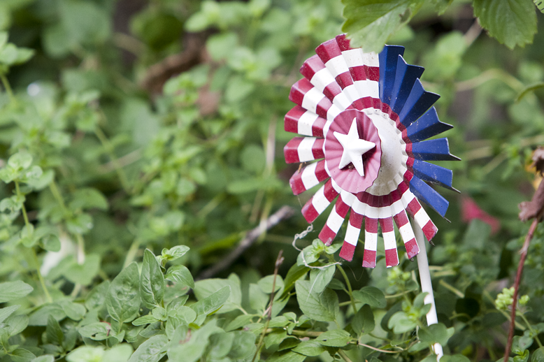 Slim pickings today. I was waiting around for a hummingbird that never returned. So, here’s some patriotism among the oregano, instead.